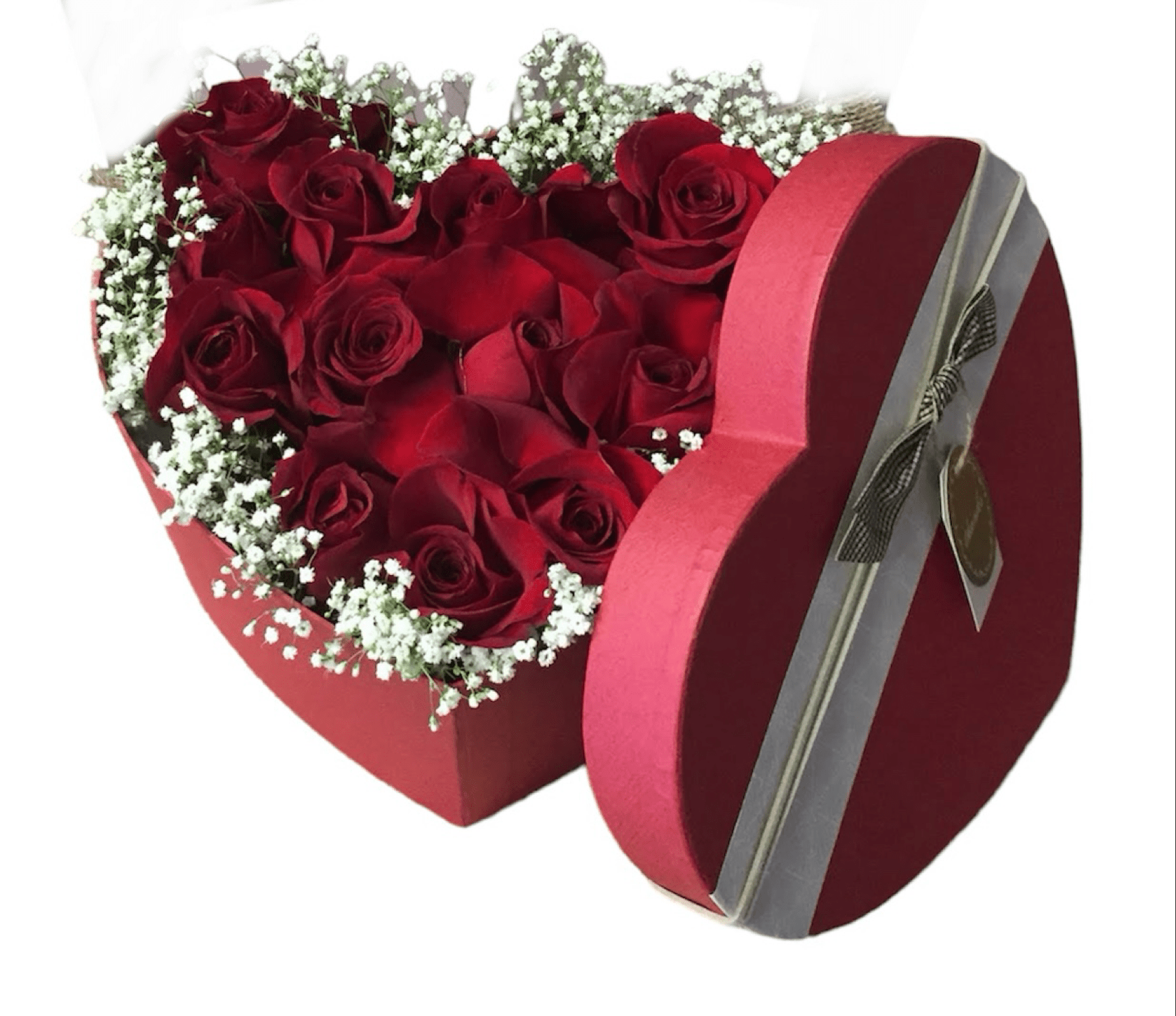 A timeless symbol of love, our Surrounding You arrangement features stunning red roses artfully arranged in an elegant heart-shaped box. This romantic design is perfect for anniversaries, Valentine’s Day, or simply saying “I love you.” The box is available in red, cream, lavender, pink or gold allowing you to choose the color that best expresses your sentiment.