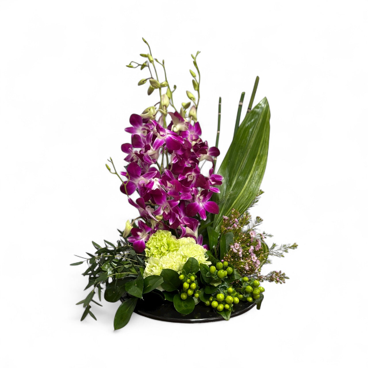 Our Zen Artistry arrangement captures modern elegance with exotic dendrobium orchids and fresh green carnations. Designed with a sleek, contemporary style, this piece brings harmony and beauty to any space. Perfect for offices, homes, or as a sophisticated gift, its clean lines and vibrant colors create a peaceful balance. Flower varieties may vary based on seasonal availability to ensure the freshest design.